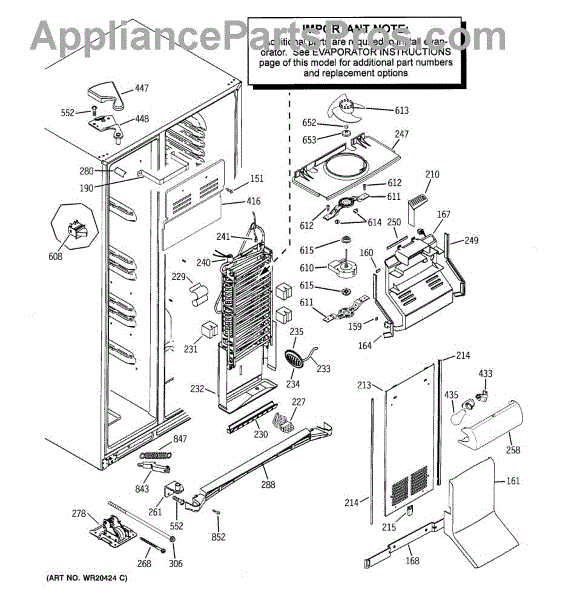 Drip trough assembly catches defrost and condensation water in your side-by-side refrigerator. Replace if cracked, broken, or causing leaks.