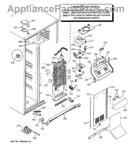 Drip trough assembly catches defrost and condensation water in your side-by-side refrigerator. Replace if cracked, broken, or causing leaks.
