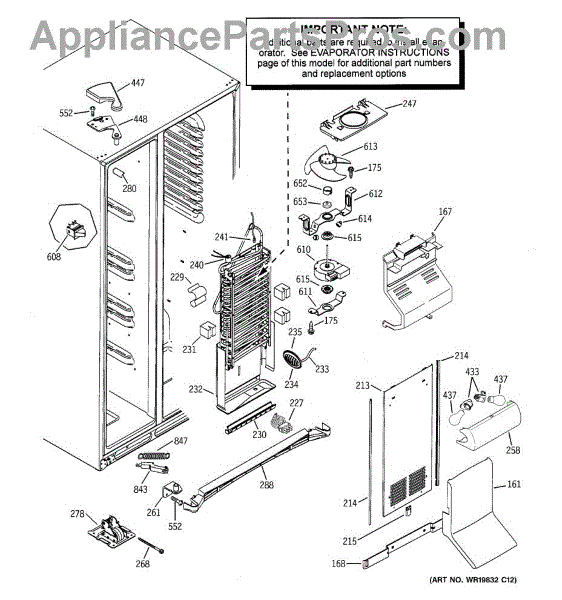 Evaporator orifice housing assembly for side-by-side refrigerators. Covers and protects the evaporator orifice connection. Replace if cracked or broken.