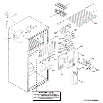 Drain trough that channels defrost water to the drain pan in your top-mount refrigerator. Replace if cracked, warped, or missing to prevent leaks.