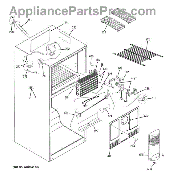 The Evaporator Fan Motor is an OEM replacement part for GE side-by-side refrigerator models. Located inside the freezer compartment, it powers the critical fan circulating air across cooling coils. Causes of a bad motor can include normal wear reducing output over many years, accumulated dirt impairing rotation, or damage sustained during maintenance. Symptoms include: