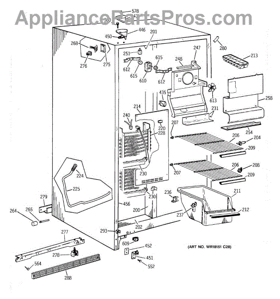 Parts for Ge MSG22GABGWW: 02 - Freezer Section Parts