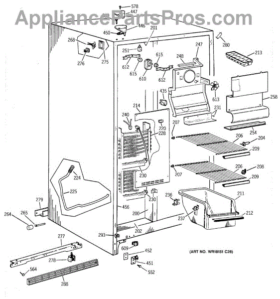 Parts for Ge MSG22GABKWW: 02 - Freezer Section Parts