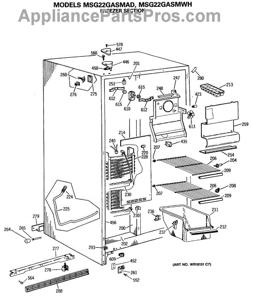 Parts for Ge MSG22GASMWH: 02 - Freezer Section Parts