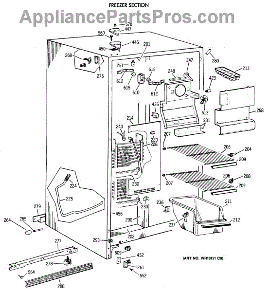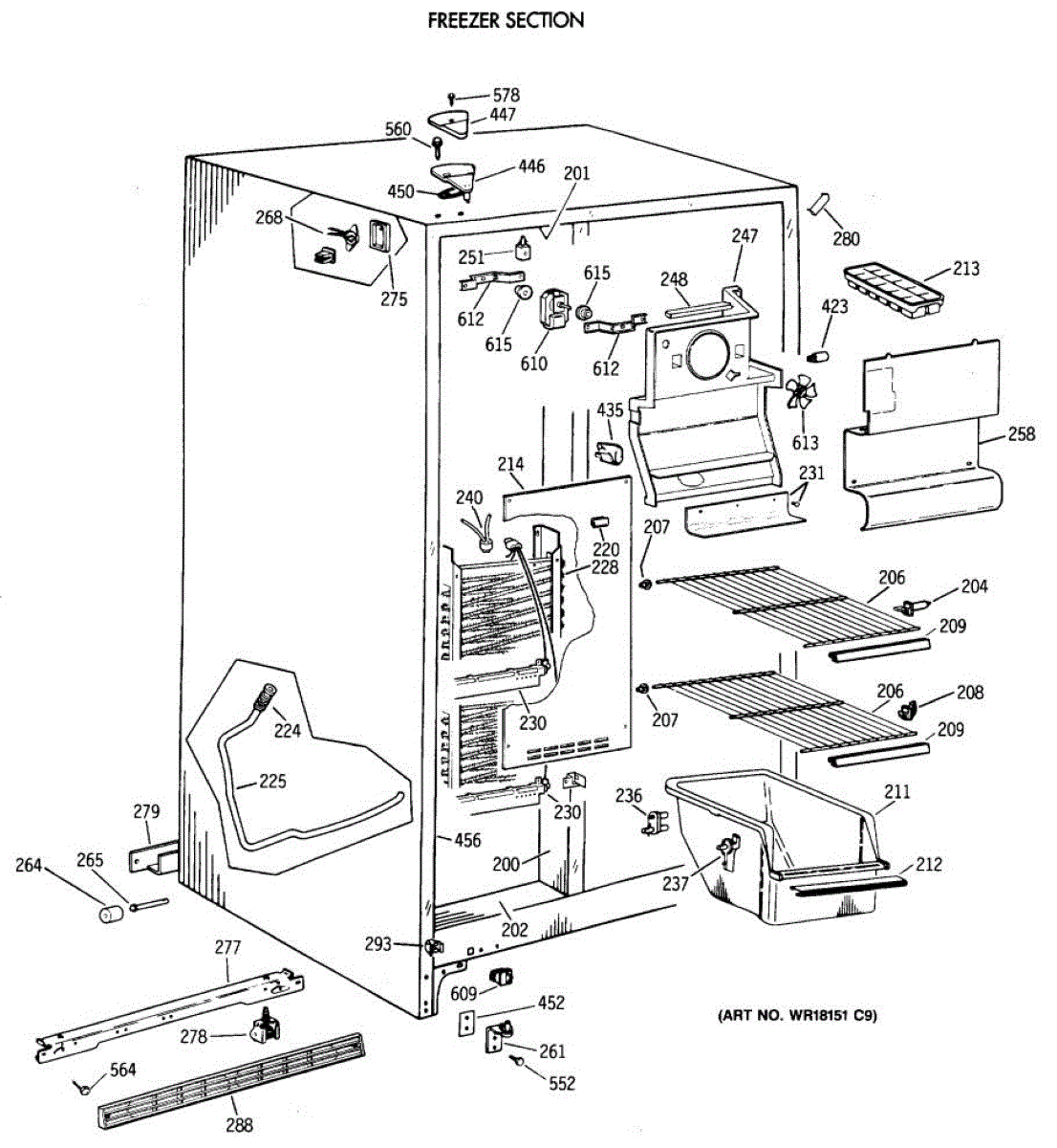 Parts for Ge MSX20BAXAAD: 02 - Freezer Section Parts