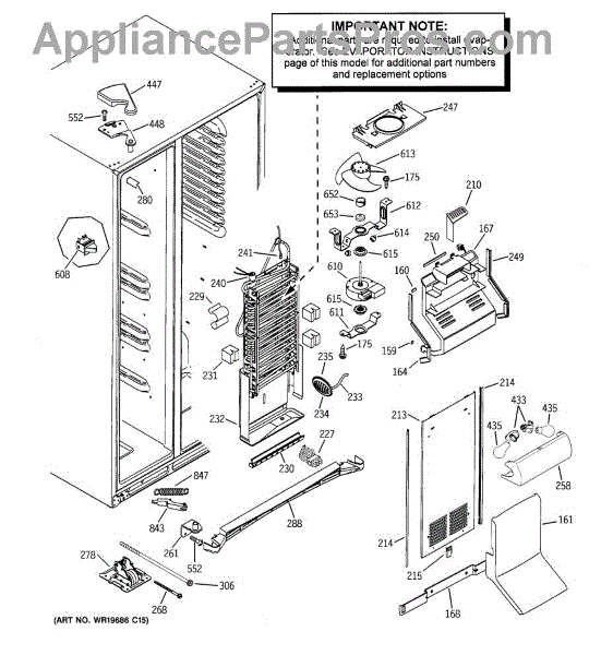 Drip trough assembly catches defrost and condensation water in your side-by-side refrigerator. Replace if cracked, broken, or causing leaks.
