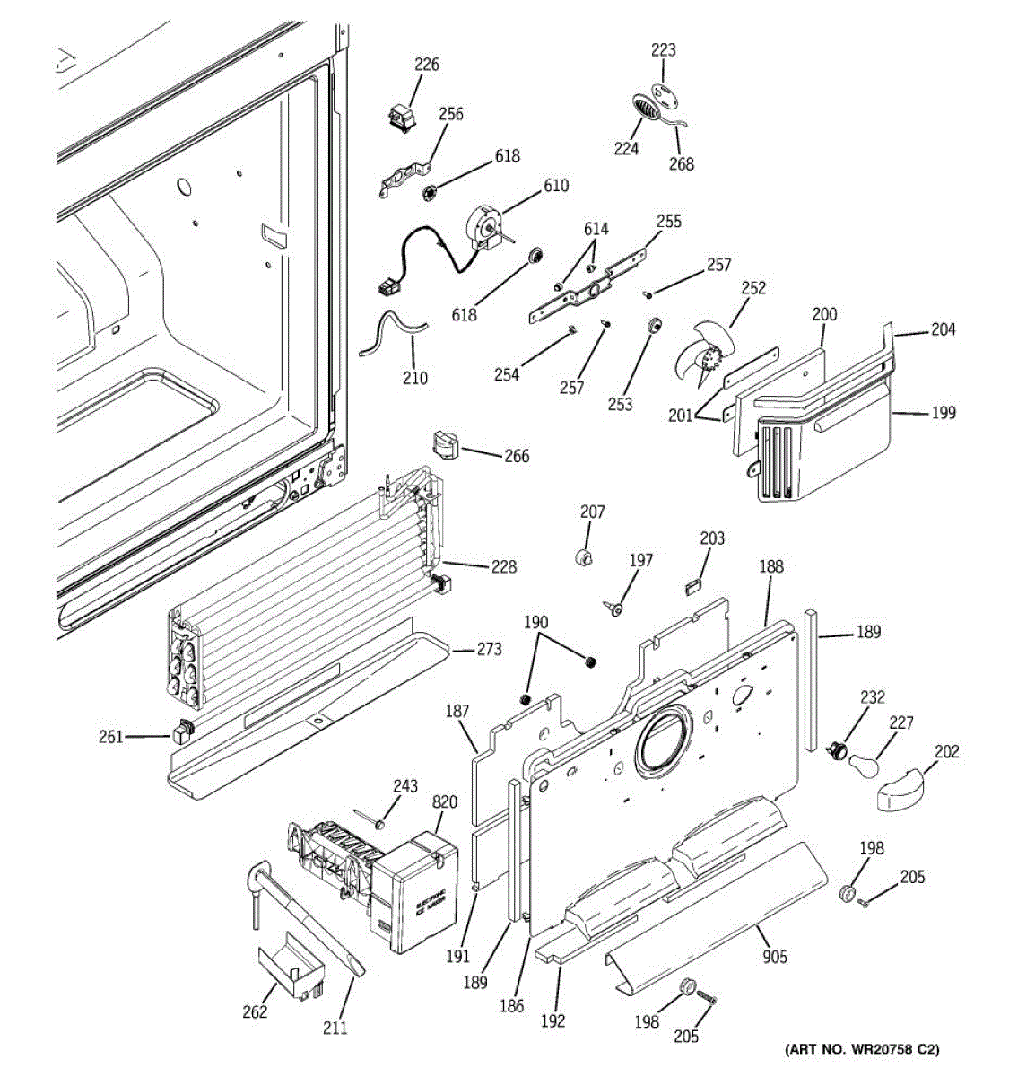 Secures the evaporator fan assembly behind the rear freezer panel. Replace if cracked, rusted, or missing to restore proper fan mounting and clearance.