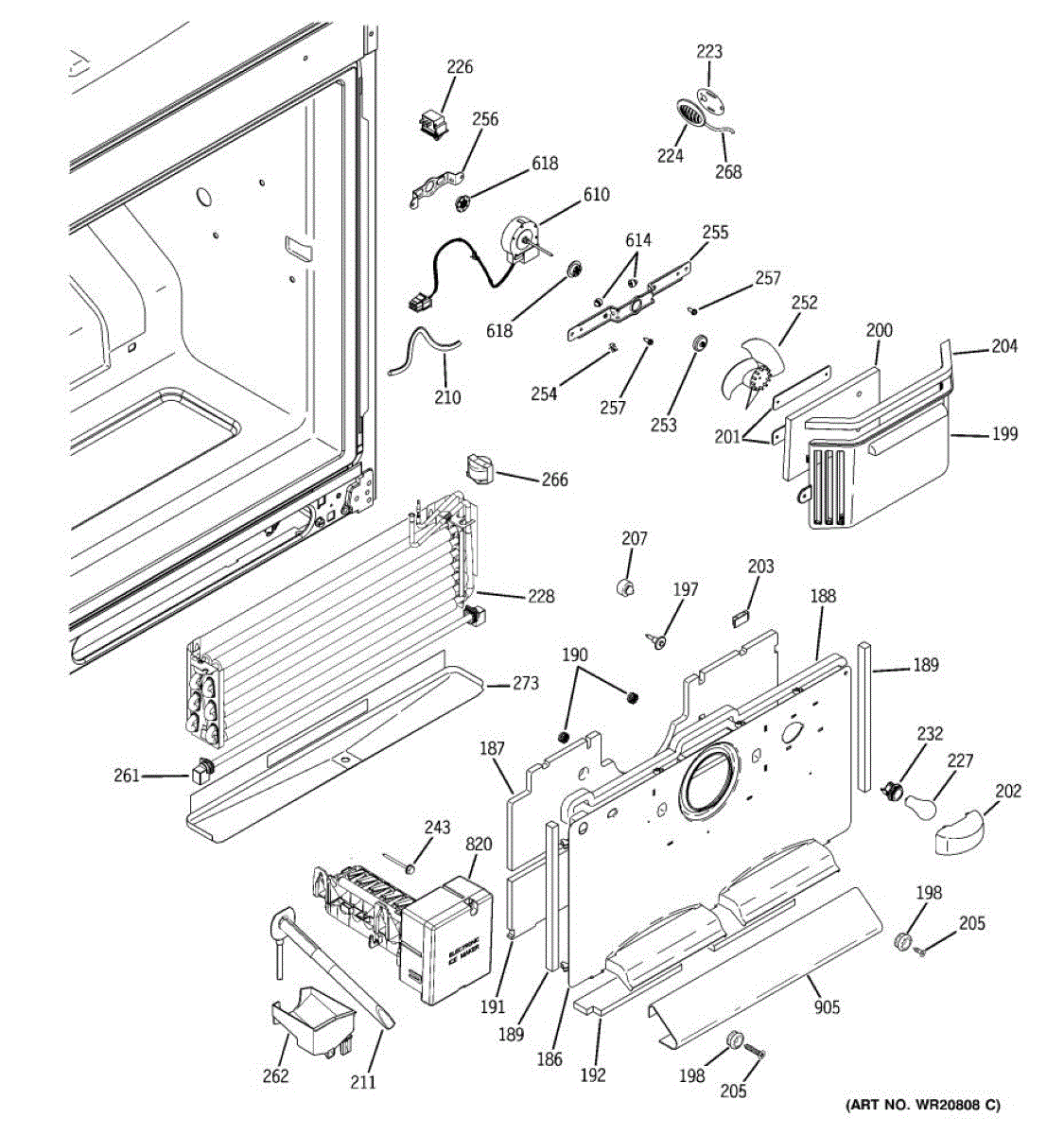 Secures the evaporator fan assembly behind the rear freezer panel. Replace if cracked, rusted, or missing to restore proper fan mounting and clearance.