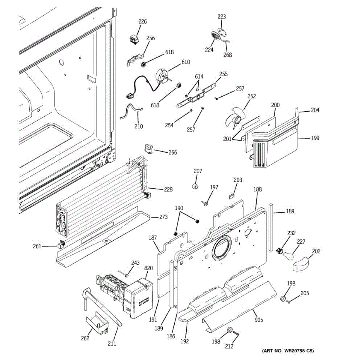 Secures the evaporator fan assembly behind the rear freezer panel. Replace if cracked, rusted, or missing to restore proper fan mounting and clearance.
