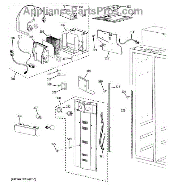 Parts for Ge PSB42LGRWV: Freezer Section Parts