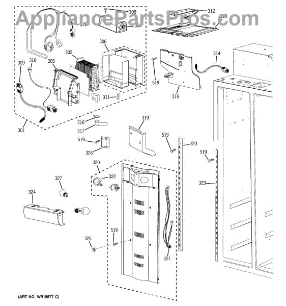 The Evaporator Case with Heater is an OEM replacement part for GE refrigerators. This part is responsible for covering and protecting the evaporator coils in the rear of the freezer compartment.