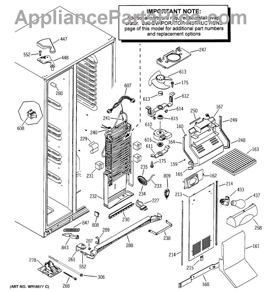 Drip trough assembly catches defrost and condensation water in your side-by-side refrigerator. Replace if cracked, broken, or causing leaks.