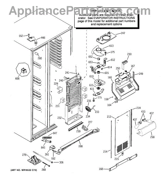 Drip trough assembly catches defrost and condensation water in your side-by-side refrigerator. Replace if cracked, broken, or causing leaks.