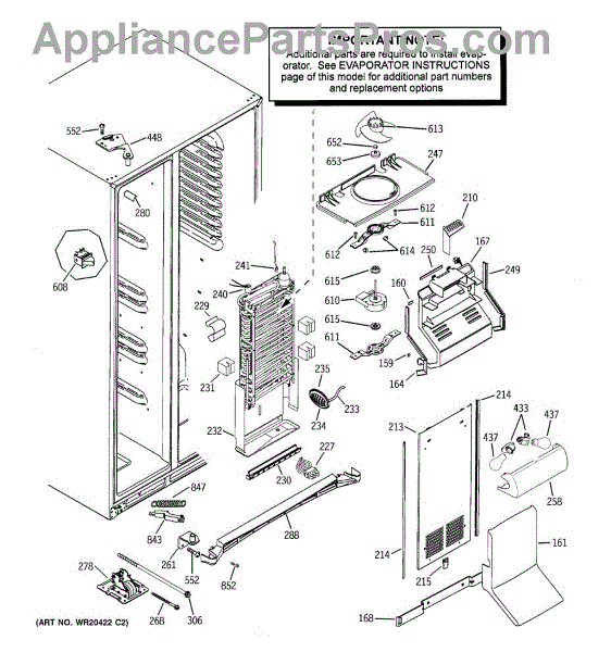 Front cover panel for refrigerator evaporator assembly. Replaces cracked, broken, or missing covers. Installs over evaporator coils in freezer section.