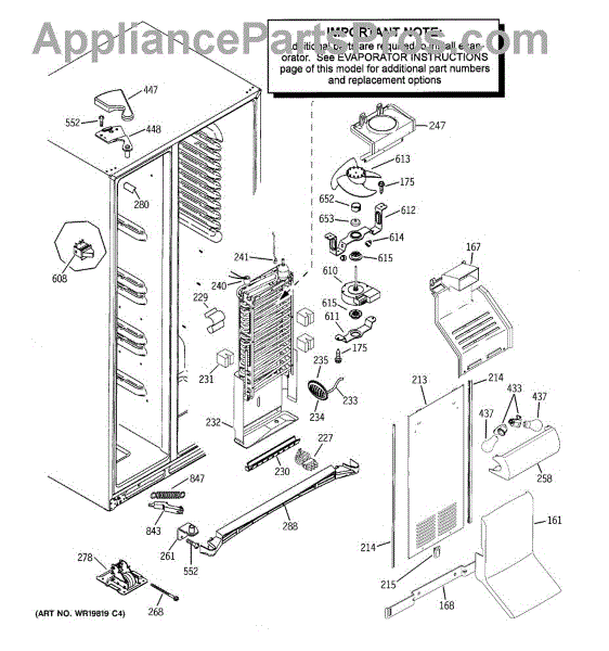 Evaporator orifice housing assembly for side-by-side refrigerators. Covers and protects the evaporator orifice connection. Replace if cracked or broken.