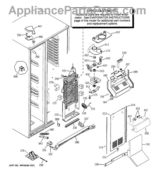 Drip trough assembly catches defrost and condensation water in your side-by-side refrigerator. Replace if cracked, broken, or causing leaks.