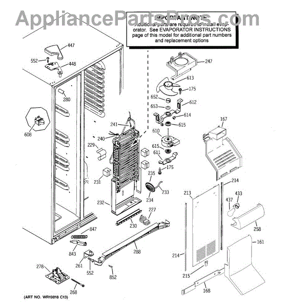 Evaporator orifice housing assembly for side-by-side refrigerators. Covers and protects the evaporator orifice connection. Replace if cracked or broken.