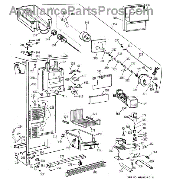 Parts for Ge TFB26SPDABS: 03 - Freezer Section Parts