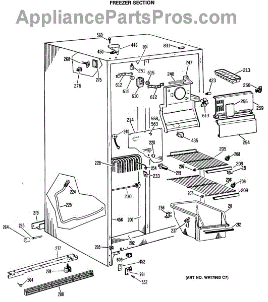 Parts for Ge TFE20PRAWH: 02 - Freezer Section Parts
