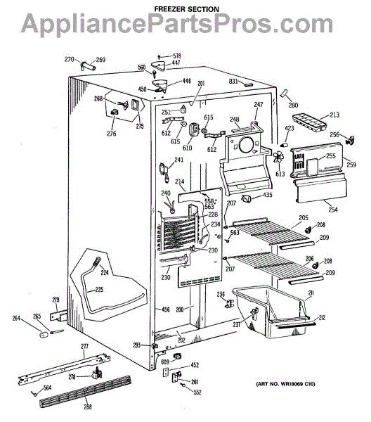 The Defrost Thermostat is an OEM part for GE refrigerators. It regulates the temperature of the defrost cycle by sensing the temperature of the evaporator coils and signaling the defrost heater to turn on or off. This helps prevent ice buildup on the coils, ensuring efficient cooling and proper refrigerator operation.