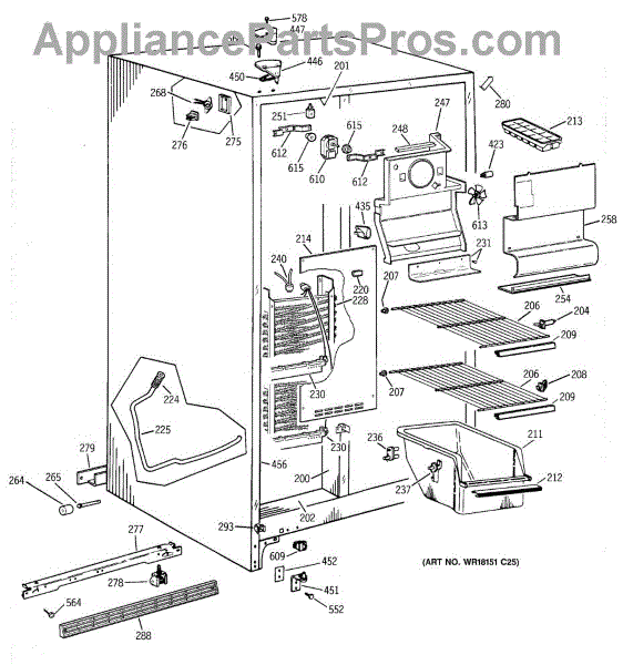 Parts for Ge TFG22JABEWW: 02 - Freezer Section Parts
