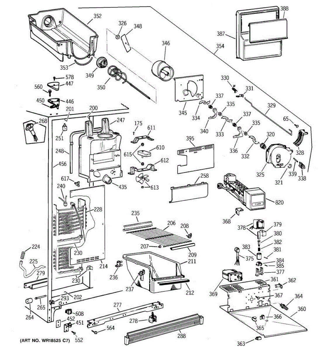 Parts for Ge TFM25CRBEBS: 03 - Freezer Section Parts