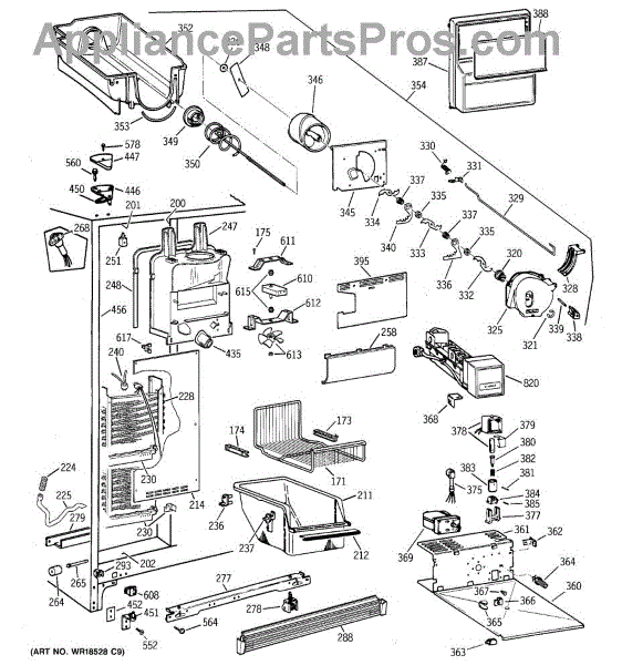 This OEM Replacement Part is an ice container assembly for GE side-by-side refrigerators from 1998 models and newer with 24 to 27 cubic feet capacity. The assembly includes a 12 3/8” wide x 12 3/8” long x 14 5/8” tall ice bucket with an integrated auger to rotate and move ice into the dispenser chute. The auger within the assembly helps move the ice cubes forward, enabling easy access and dispensing.