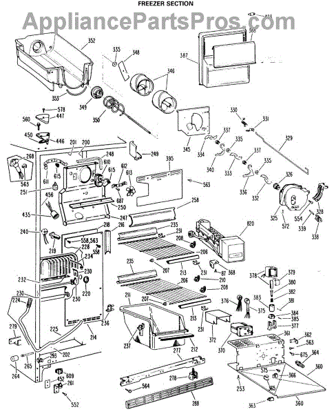 Parts for Ge TFX24FLL: 03 - Freezer Section Parts