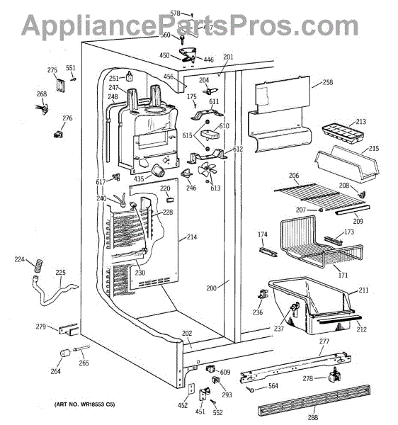 The Defrost Heater and Bracket Assembly is an OEM replacement part for GE refrigerators. It is responsible for facilitating the defrosting process, which is essential for maintaining proper cooling and preventing excessive ice buildup within the freezer compartment.
