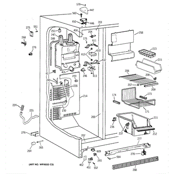 The Defrost Heater and Bracket Assembly is an OEM replacement part for GE refrigerators. It is responsible for facilitating the defrosting process, which is essential for maintaining proper cooling and preventing excessive ice buildup within the freezer compartment.