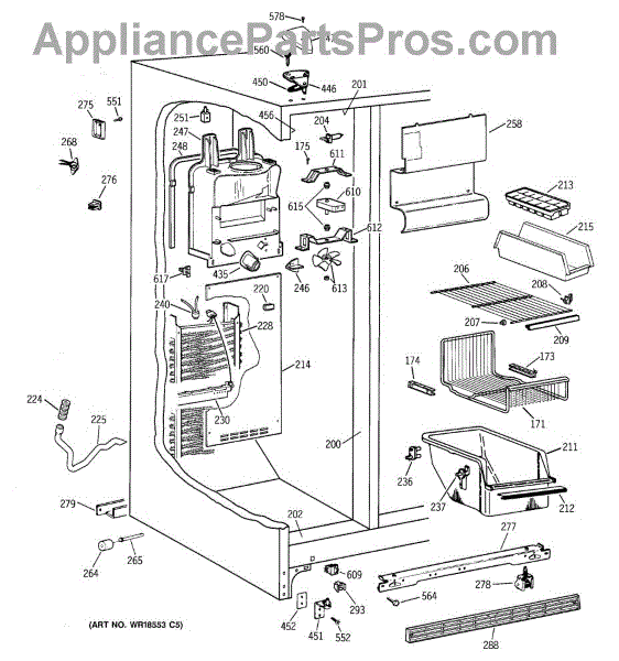 The Defrost Heater and Bracket Assembly is an OEM replacement part for GE refrigerators. It is responsible for facilitating the defrosting process, which is essential for maintaining proper cooling and preventing excessive ice buildup within the freezer compartment.