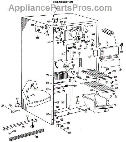 Parts for Ge TFXC22ZMA: 02 - Freezer Section Parts