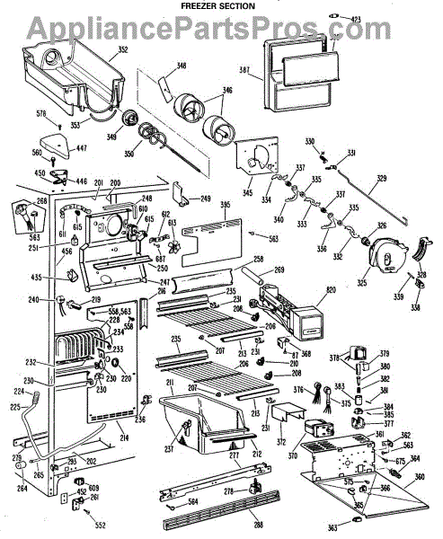 Parts for Ge TFXW27FLR: 03 - Freezer Section Parts