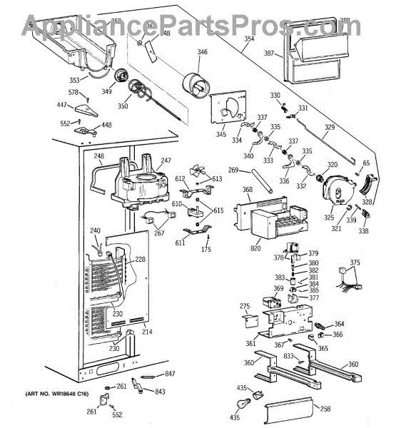 • Distributes cold air to the refrigerator and freezer sections
