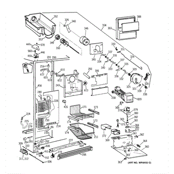 This OEM Replacement Part is an ice container assembly for GE side-by-side refrigerators from 1998 models and newer with 24 to 27 cubic feet capacity. The assembly includes a 12 3/8” wide x 12 3/8” long x 14 5/8” tall ice bucket with an integrated auger to rotate and move ice into the dispenser chute. The auger within the assembly helps move the ice cubes forward, enabling easy access and dispensing.