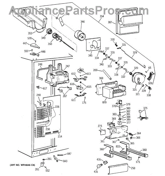 • Distributes cold air to the refrigerator and freezer sections