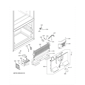 The Evaporator Cover and Fan is an OEM replacement part for GE refrigerators, is responsible for maintaining proper airflow and temperature regulation within the refrigerator's freezer compartment. The fan helps distribute the cold air while the cover protects the evaporator coils from any damage or obstruction.