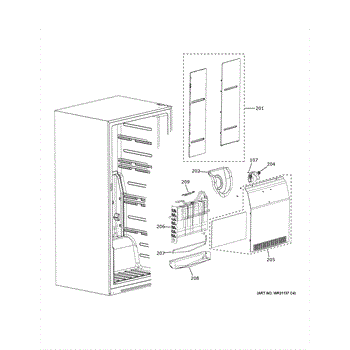 The Evaporator Fan Shroud is an OEM replacement part for GE refrigerators. It is responsible for directing airflow and ensuring proper circulation in the freezer compartment.