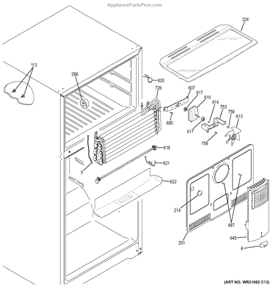 The Air Tower and Evaporator Cover Assembly is an OEM part for GE refrigerators. This multi-piece component is located inside the refrigerator compartment and manages airflow that travels through the evaporator coil area. An attractive cover protects inner workings while directing optimal temperature control.