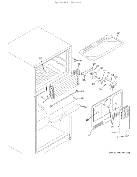The Air Tower and Evaporator Cover Assembly is an OEM part for GE refrigerators. This multi-piece component is located inside the refrigerator compartment and manages airflow that travels through the evaporator coil area. An attractive cover protects inner workings while directing optimal temperature control.