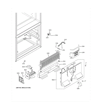 The Evaporator Cover and Fan is an OEM replacement part for GE refrigerators responsible for maintaining proper airflow and temperature regulation within the refrigerator's freezer compartment. The fan helps distribute the cold air while the cover protects the evaporator coils from any damage or obstruction.