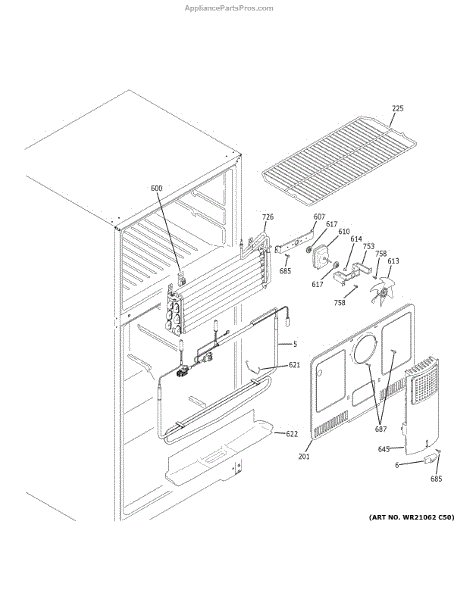The Evaporator fan front bracket is an OEM replacement part for GE refrigerators. Located inside the freezer compartment, this bracket securely mounts and supports the evaporator fan assembly. Causes of a bad front bracket include breakage from repeated fan motion, cracking from temperature fluctuations over many years, or loosening of mounting points. Symptoms of a bad evaporator fan front bracket include: