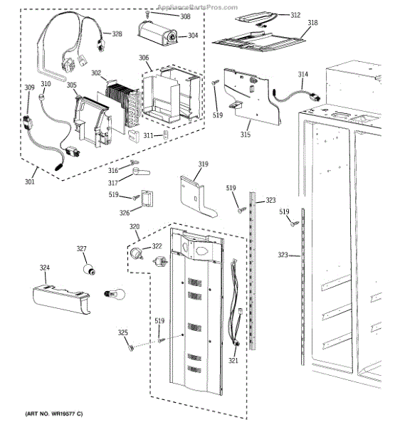 The Evaporator Case with Heater is an OEM replacement part for GE refrigerators. This part is responsible for covering and protecting the evaporator coils in the rear of the freezer compartment.