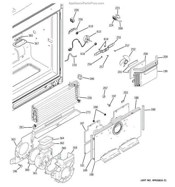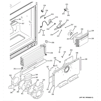 Refrigerator evaporator foam pad cover insulates and protects the evaporator coil. Replace if torn, compressed, or missing to maintain efficiency.