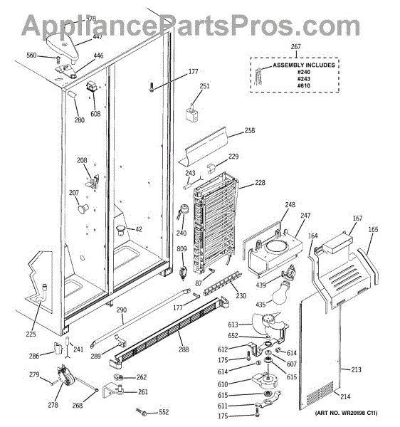 The Defrost Heater and Bracket Assembly is an OEM replacement part for GE refrigerators. It is responsible for facilitating the defrosting process, which is essential for maintaining proper cooling and preventing excessive ice buildup within the freezer compartment.