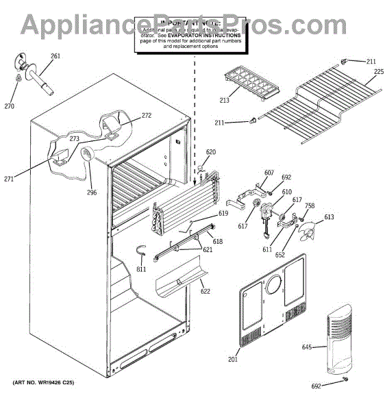 The Evaporator Fan Motor is an OEM replacement part for GE side-by-side refrigerator models. Located inside the freezer compartment, it powers the critical fan circulating air across cooling coils. Causes of a bad motor can include normal wear reducing output over many years, accumulated dirt impairing rotation, or damage sustained during maintenance. Symptoms include: