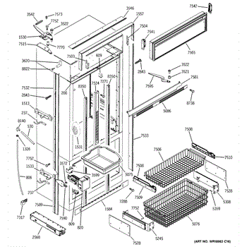 This support mounts to the freezer wall and holds the upper basket in place. Replace a broken or missing support to restore proper alignment and smooth in-out movement of the basket and prevent sagging or jams.