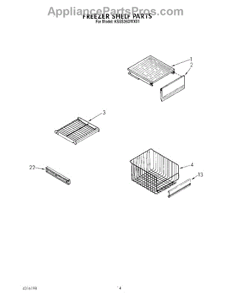 Parts for Kitchenaid KSSS36DWX01: 09 - Freezer Shelf Parts
