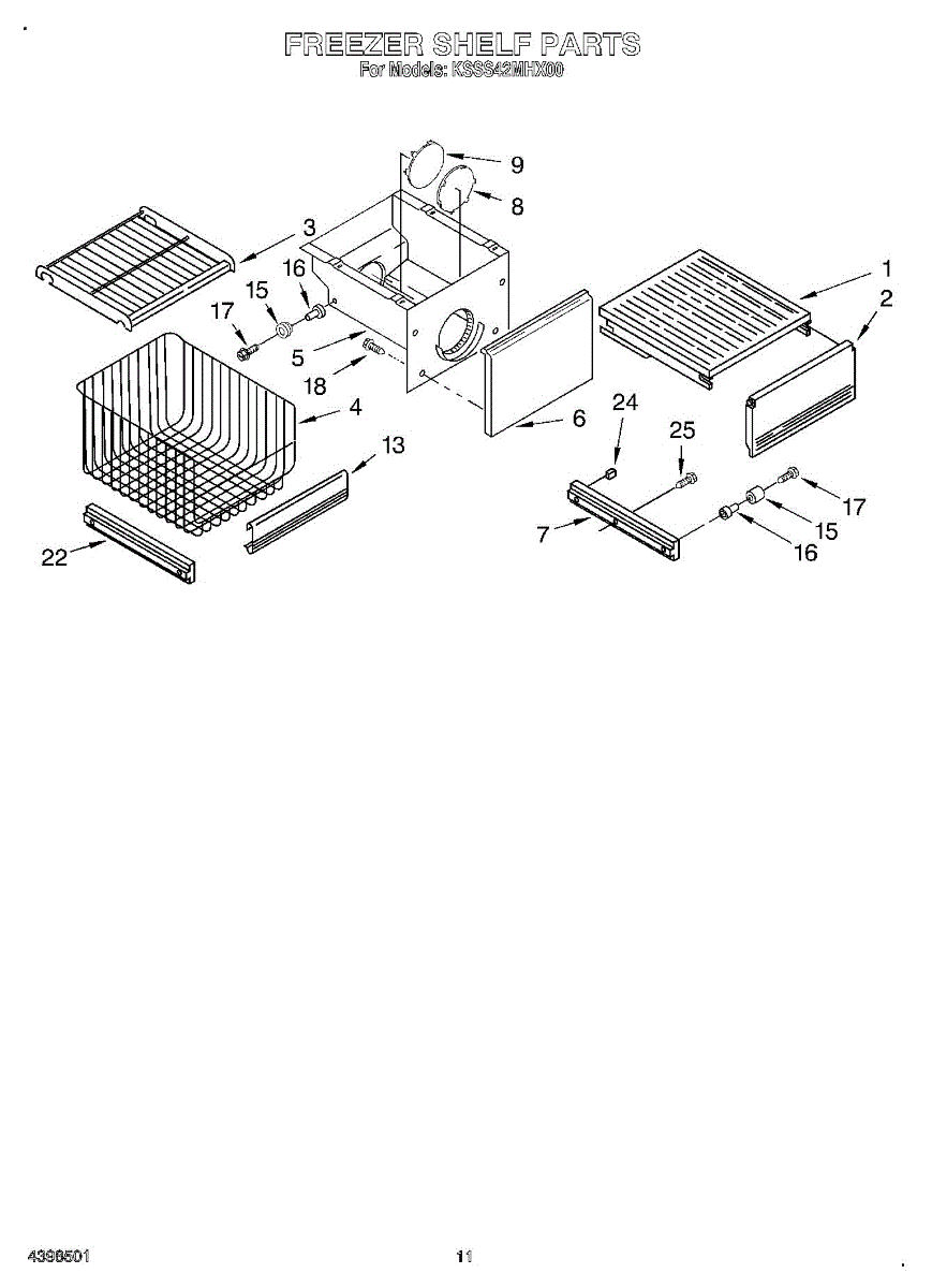 Parts for Kitchenaid KSSS42MHX00: 08 - Freezer Shelf Parts
