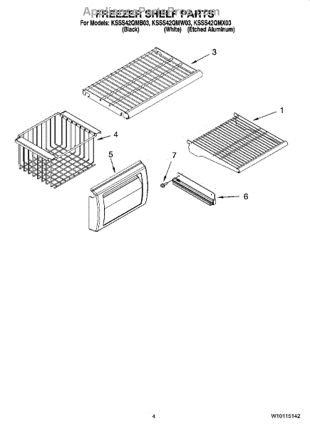 Parts for Kitchenaid KSSS42QMB03: 03 - Freezer Shelf Parts